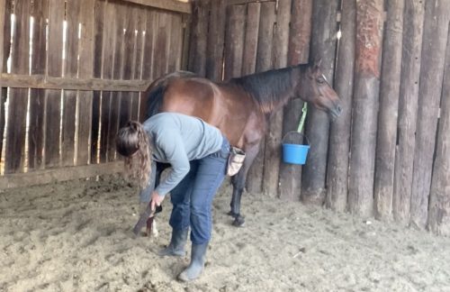 In order to keep both of us safe, happy, and relaxed, I wanted to teach her grand-prix level hoof care behaviors.