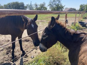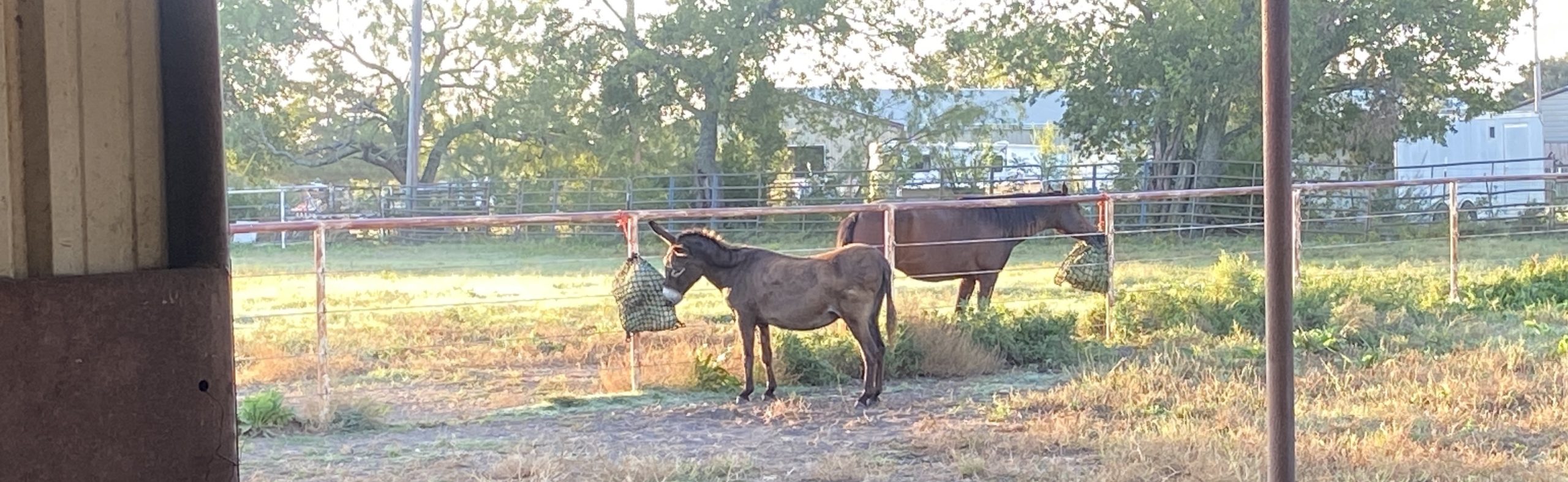 At the previous barn, introductions were often fast and sudden, resulting in stress, bad experiences, and the potential for injury. Chewie also spent a lot of time chasing a white donkey at the previous barn, when they were haphazardly introduced to each other. This experience was stressful for both the white donkey and for Chewie.
