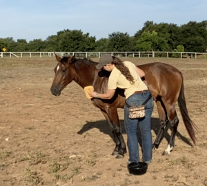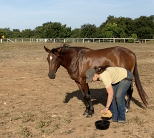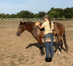 And, there’s lots of behaviors the horse may need to do. For example, if the horse steps on the hose, the person needs to be able to cue the horse to take a step backward.